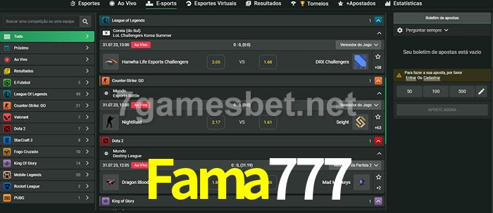 A aposta Fama777 oferece aos jogadores a experiência mais conveniente de apostas em eSports!